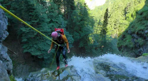 Zum ersten Mal Canyoning? Diese Touren eignen sich für all diejenigen, die sich ein mal im Canyon ausprobieren wollen. Auch wer schon zwei oder drei mal im Canyon unterwegs war, wird von diesen Touren begeistert sein. Professionell ausgerüstet starten wir in die Tour. Bevor es los geht bekommt ihr noch eine ausführliche Einschulung. Was muss ich alles beachten? Wie springe ich richtig? Wie rutsche ich richtig? Auch das Abseilen wird ausführlich erklärt und auch geübt. Wir wollen es euch ermöglichen sich selbst aktiv abzuseilen. Jetzt geht´s aber Los!
